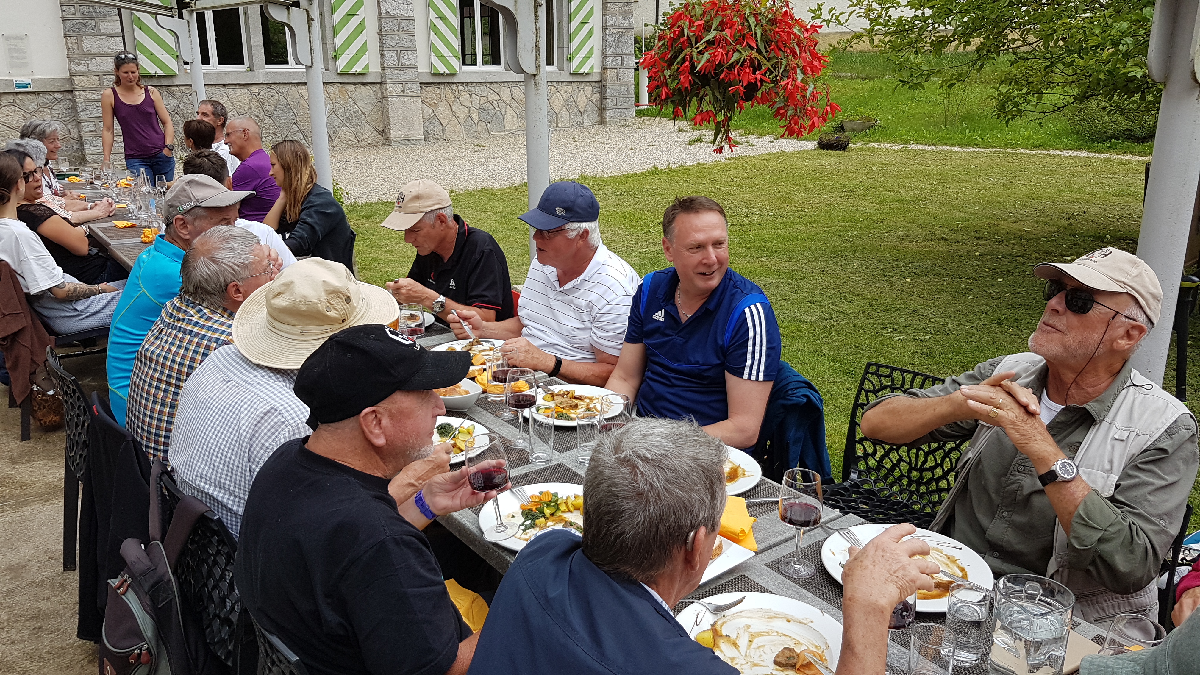 Menu : Entrée, filet de truite aux herbes et riz, plat principal, longe de veau rôtie au romarin, légumes du marché, pommes de terre au four. Dessert, « le parfait du vallon ». Apéro et entrée, pinot gris de la cave du Coteau à Cortaillod, repas, vin rouge « Magie noir, assemblage de la cave du Prieuré à Cormondrèche »