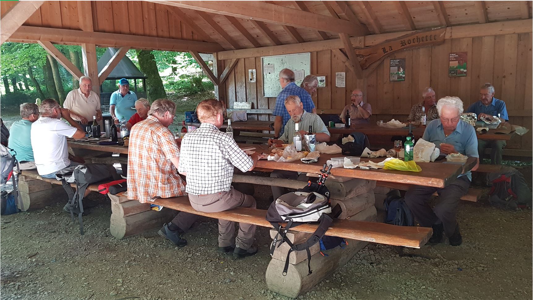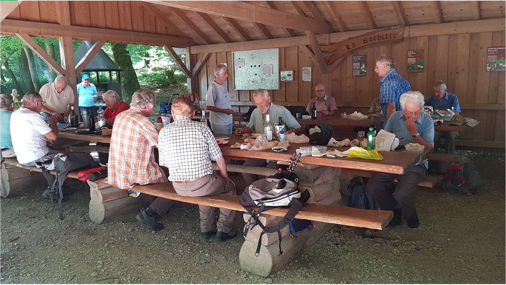 Repas: env. 1230 pique-nique tiré des sacs, sous le magnifique couvert / refuge du Helsana Trail, à l’abri des intempéries et du soleil ! |