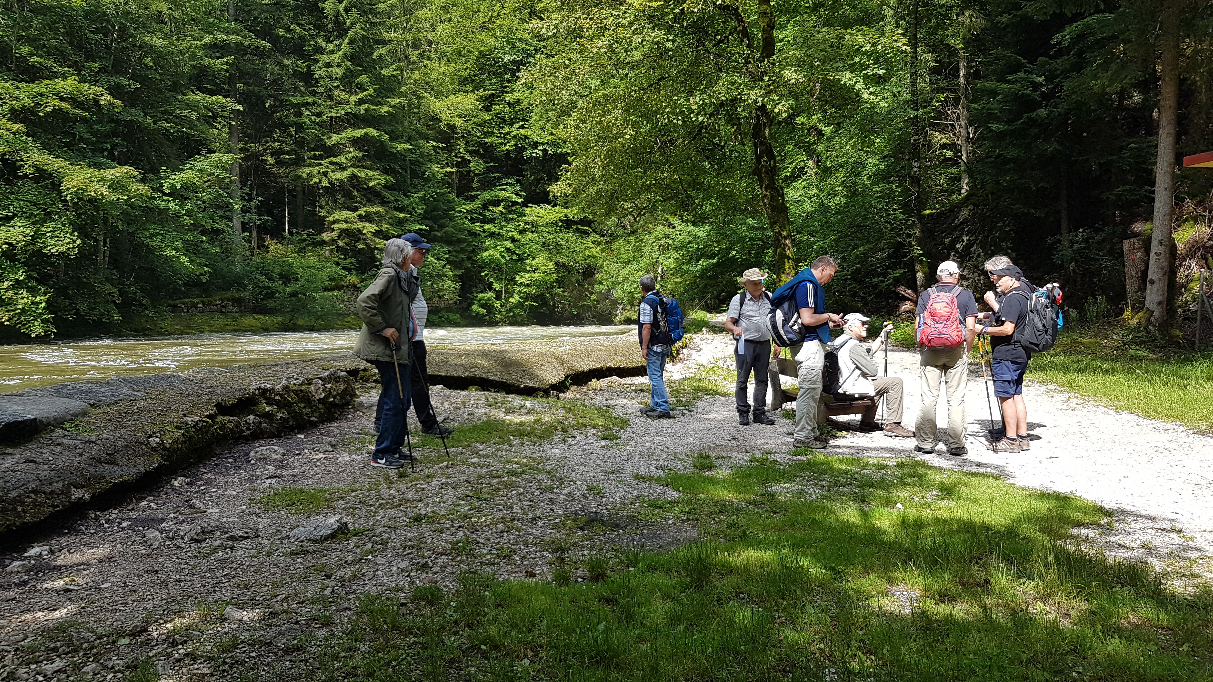 10h02   arrivée à Noiraigue et marche de 1h10 jusqu’au Champ du Moulin, en baskets et éventuellement bâtons -passage délicat avec des escaliers-