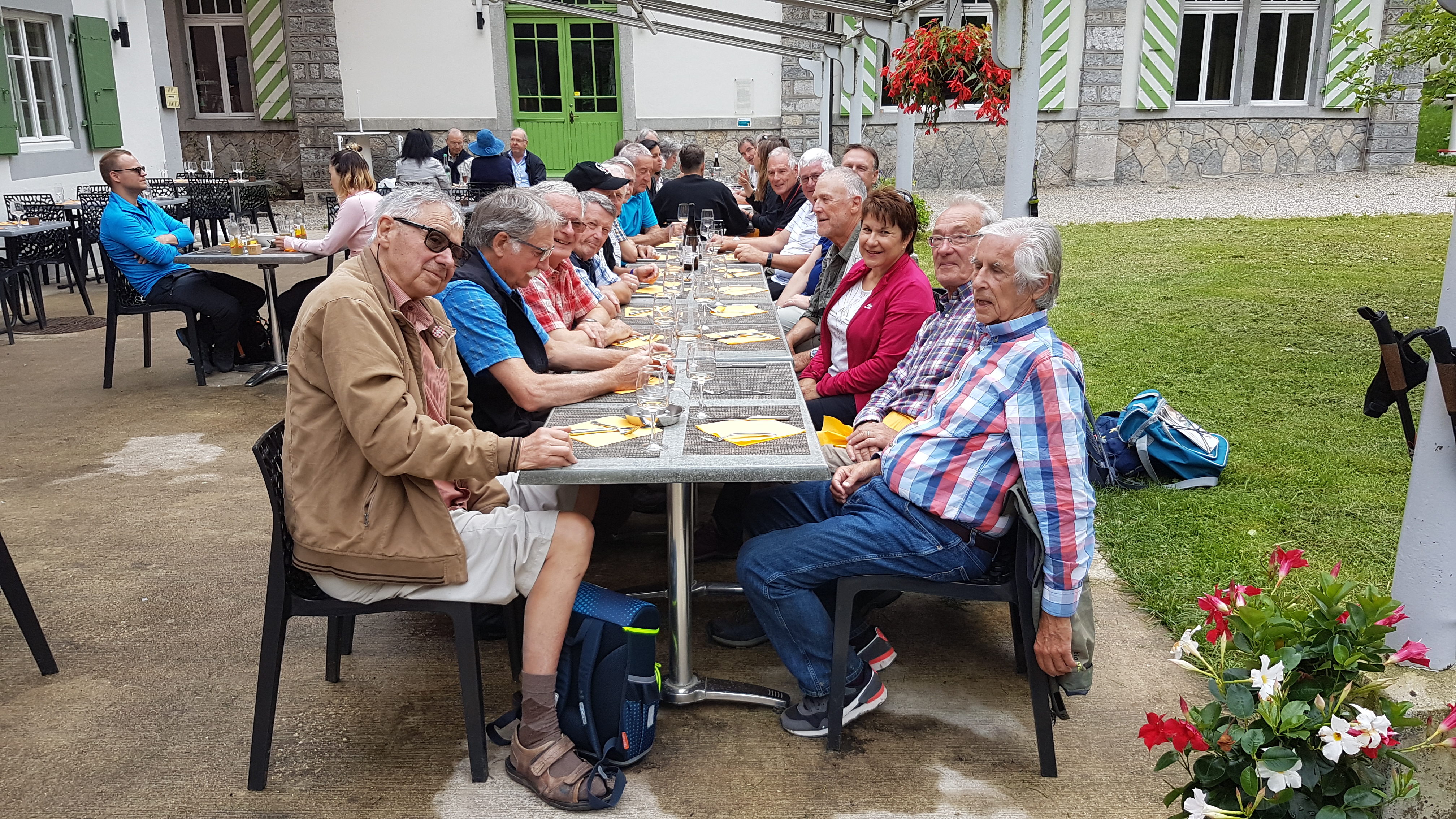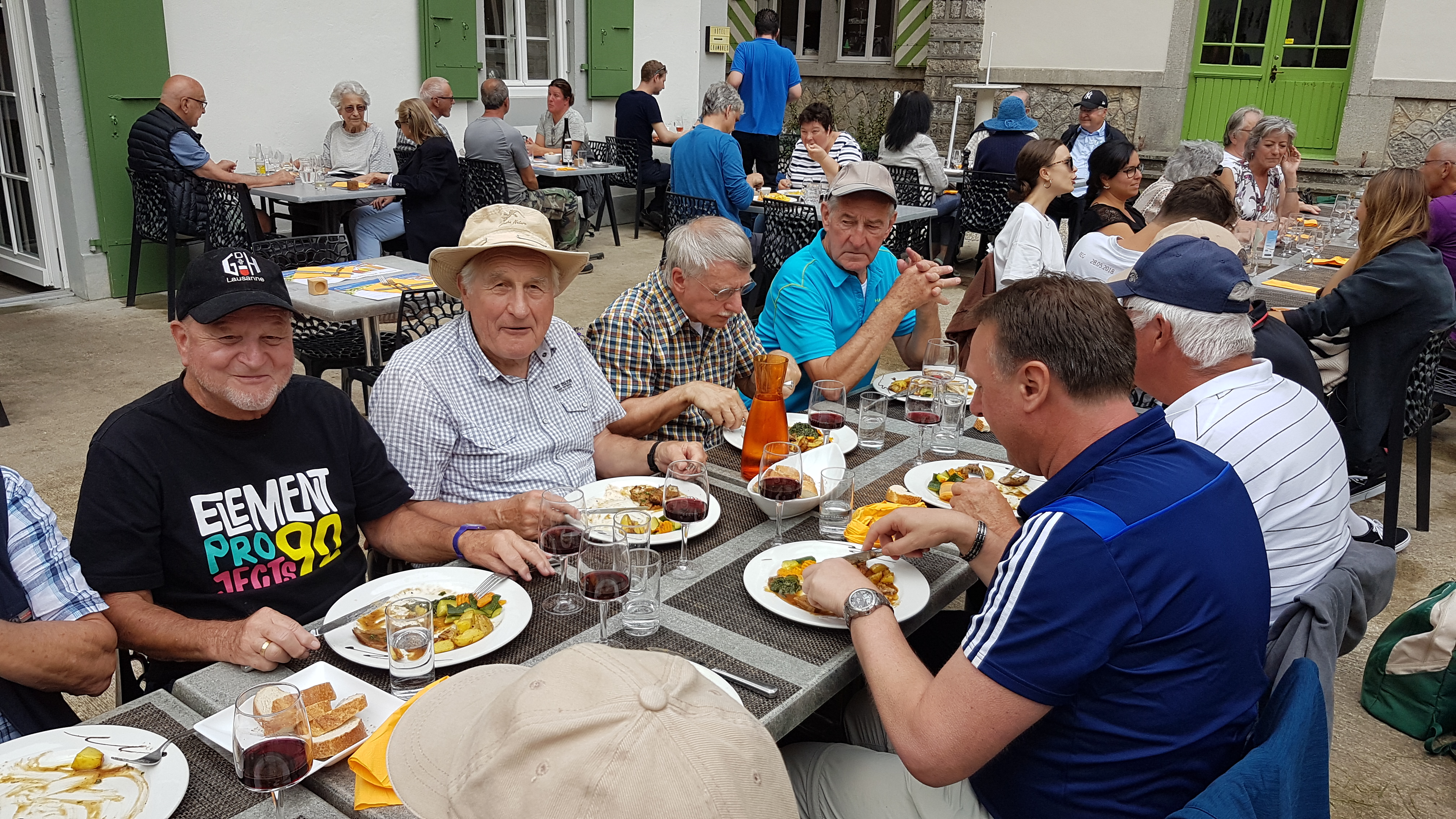Menu : Entrée, filet de truite aux herbes et riz, plat principal, longe de veau rôtie au romarin, légumes du marché, pommes de terre au four. Dessert, « le parfait du vallon ». Apéro et entrée, pinot gris de la cave du Coteau à Cortaillod, repas, vin rouge « Magie noir, assemblage de la cave du Prieuré à Cormondrèche »
