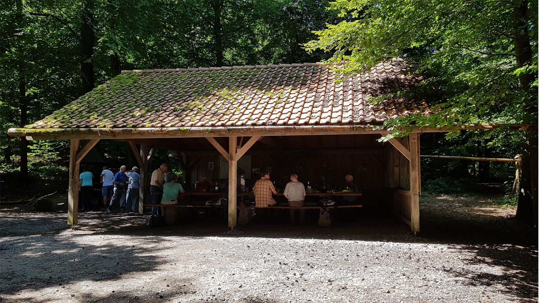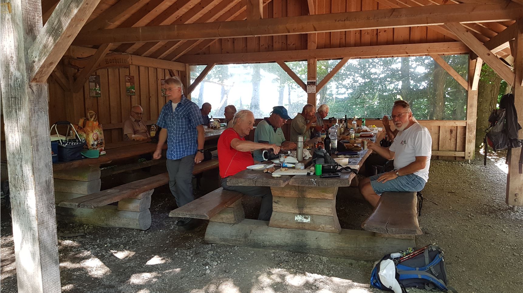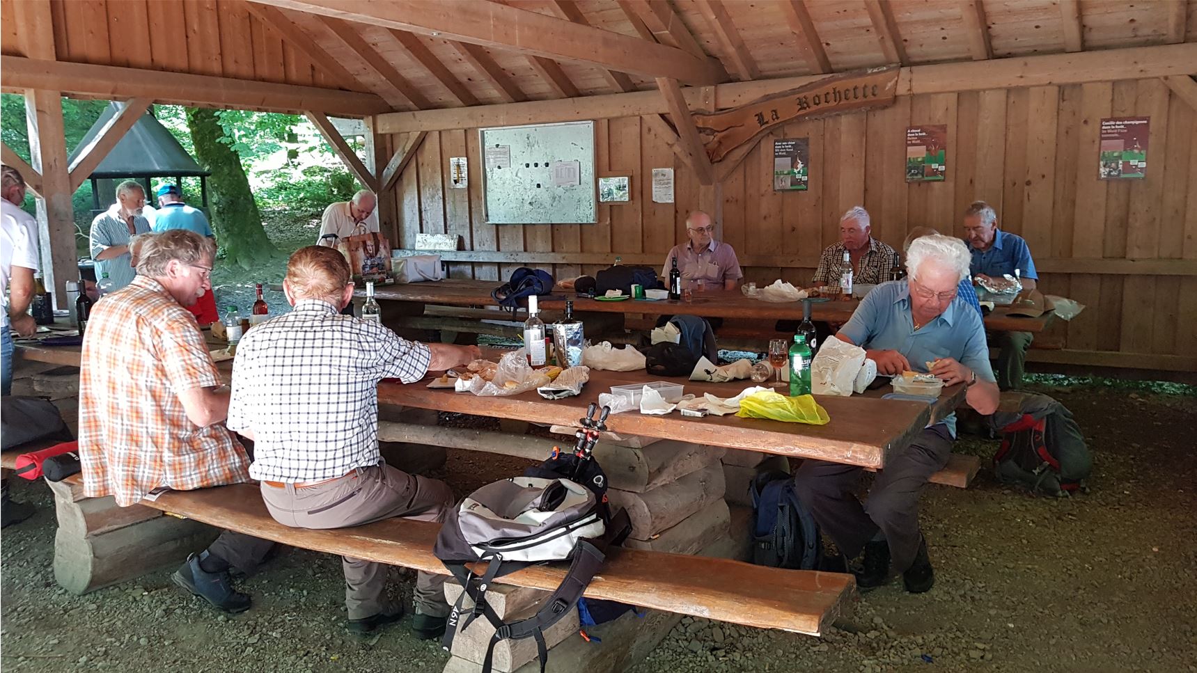 Repas: env. 1230 pique-nique tiré des sacs, sous le magnifique couvert / refuge du Helsana Trail, à l’abri des intempéries et du soleil ! |