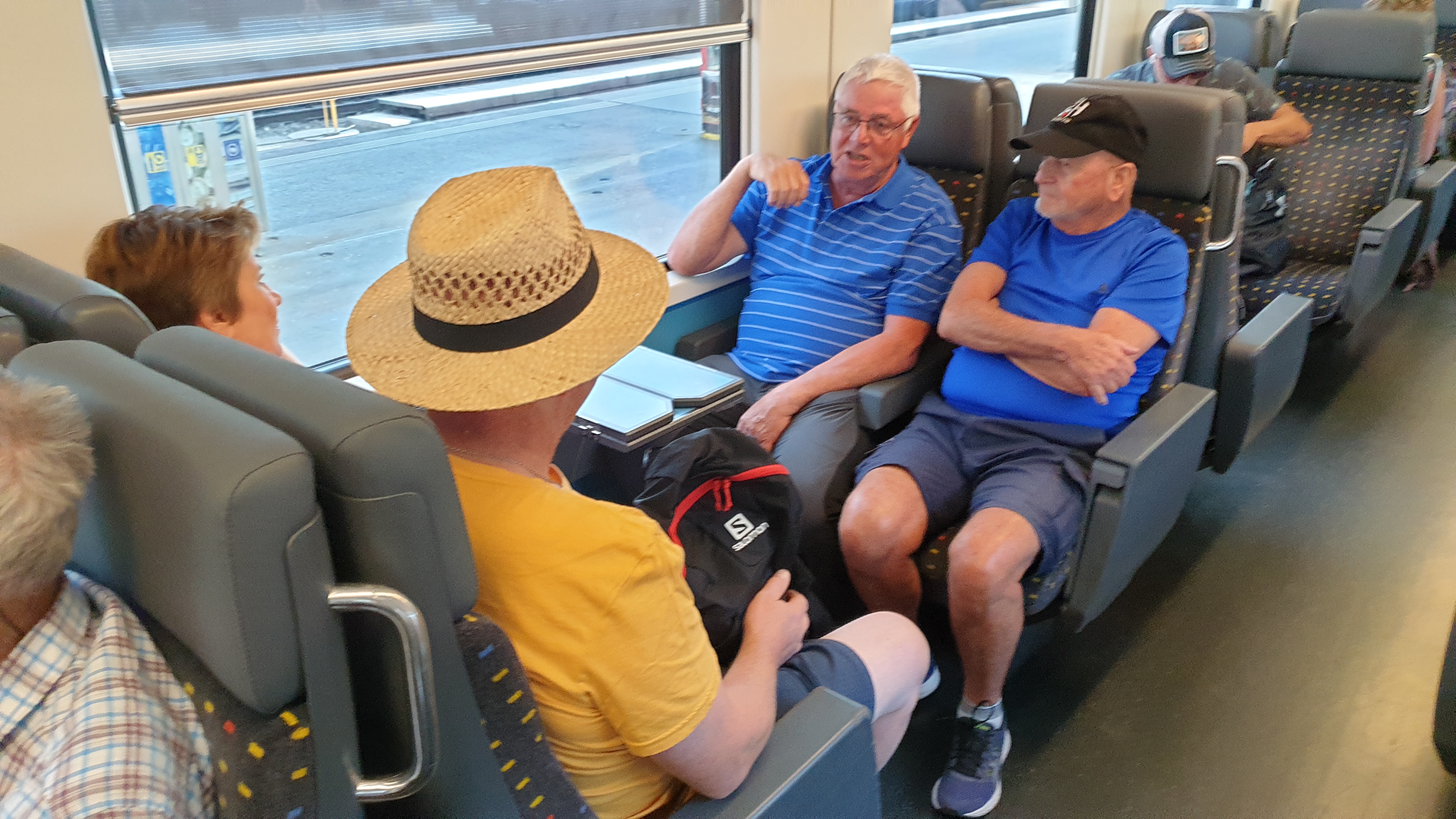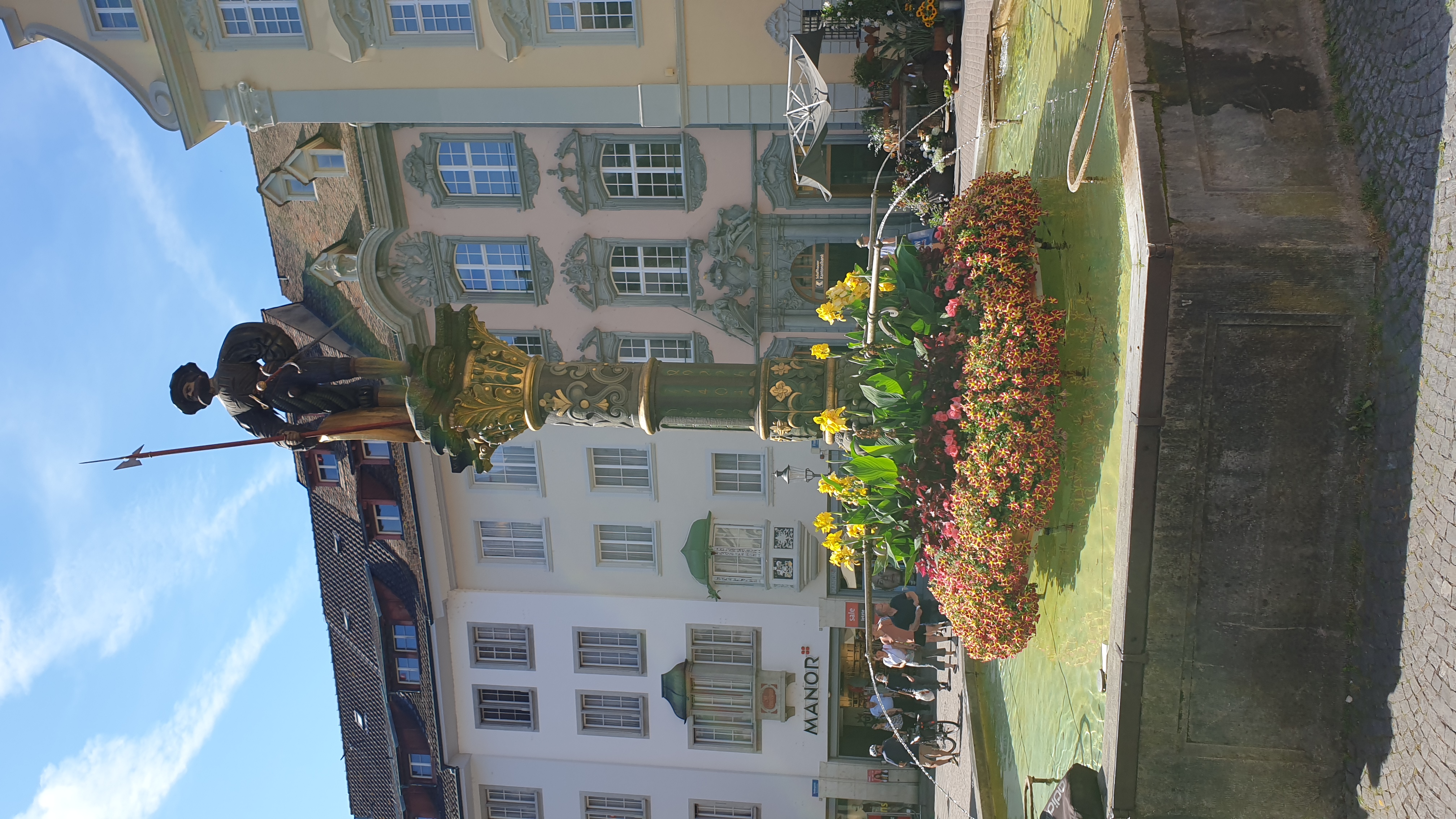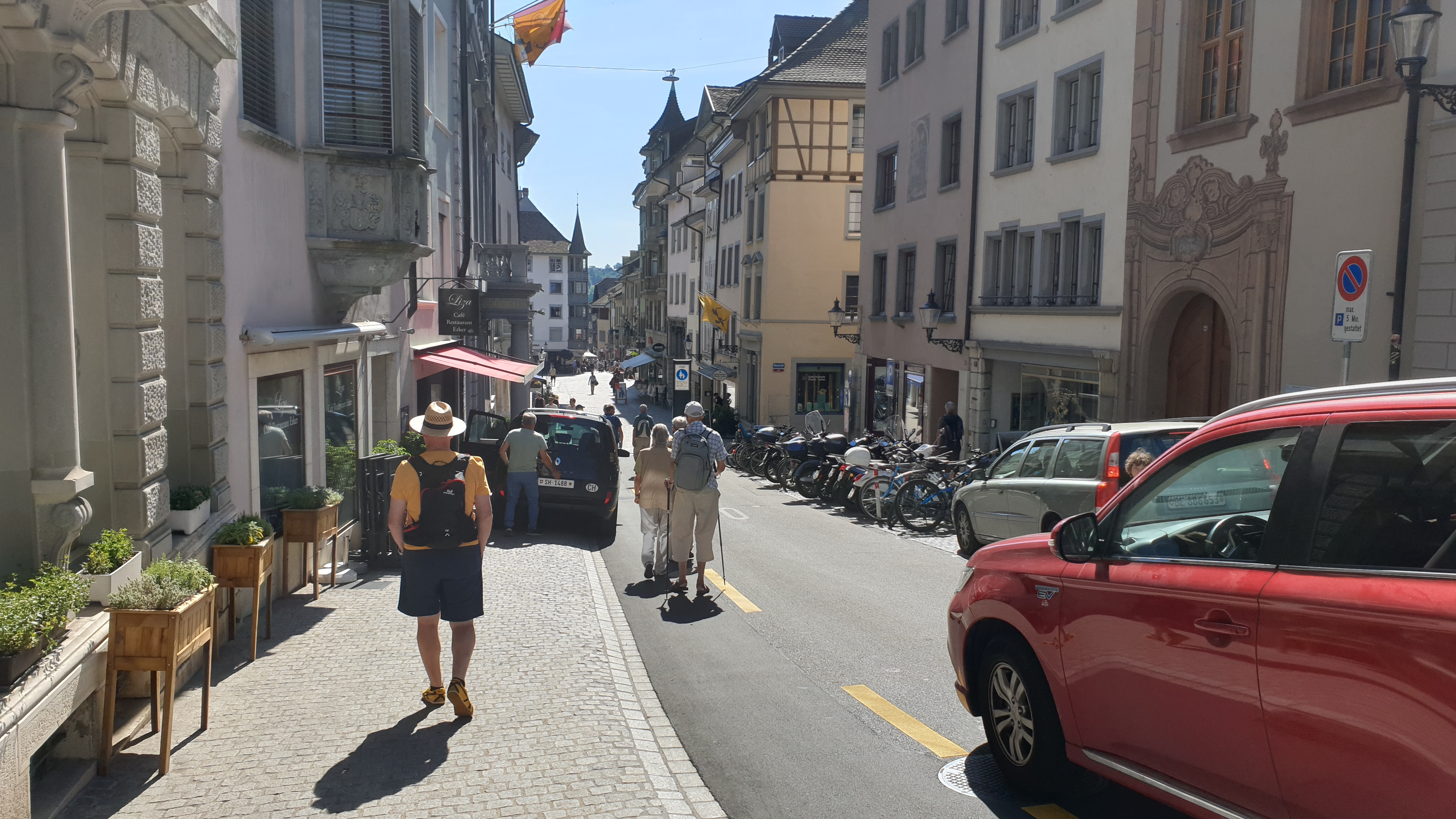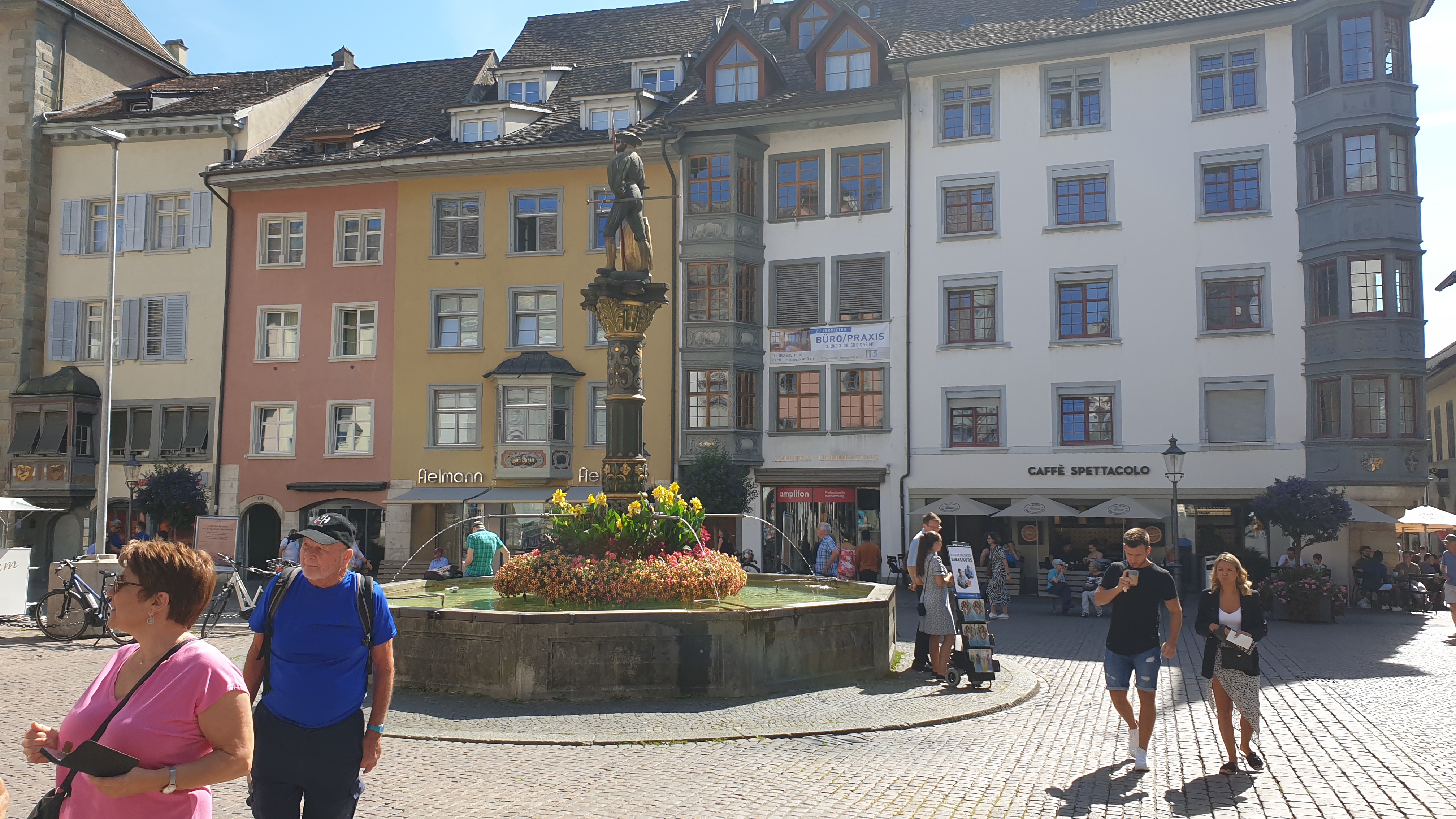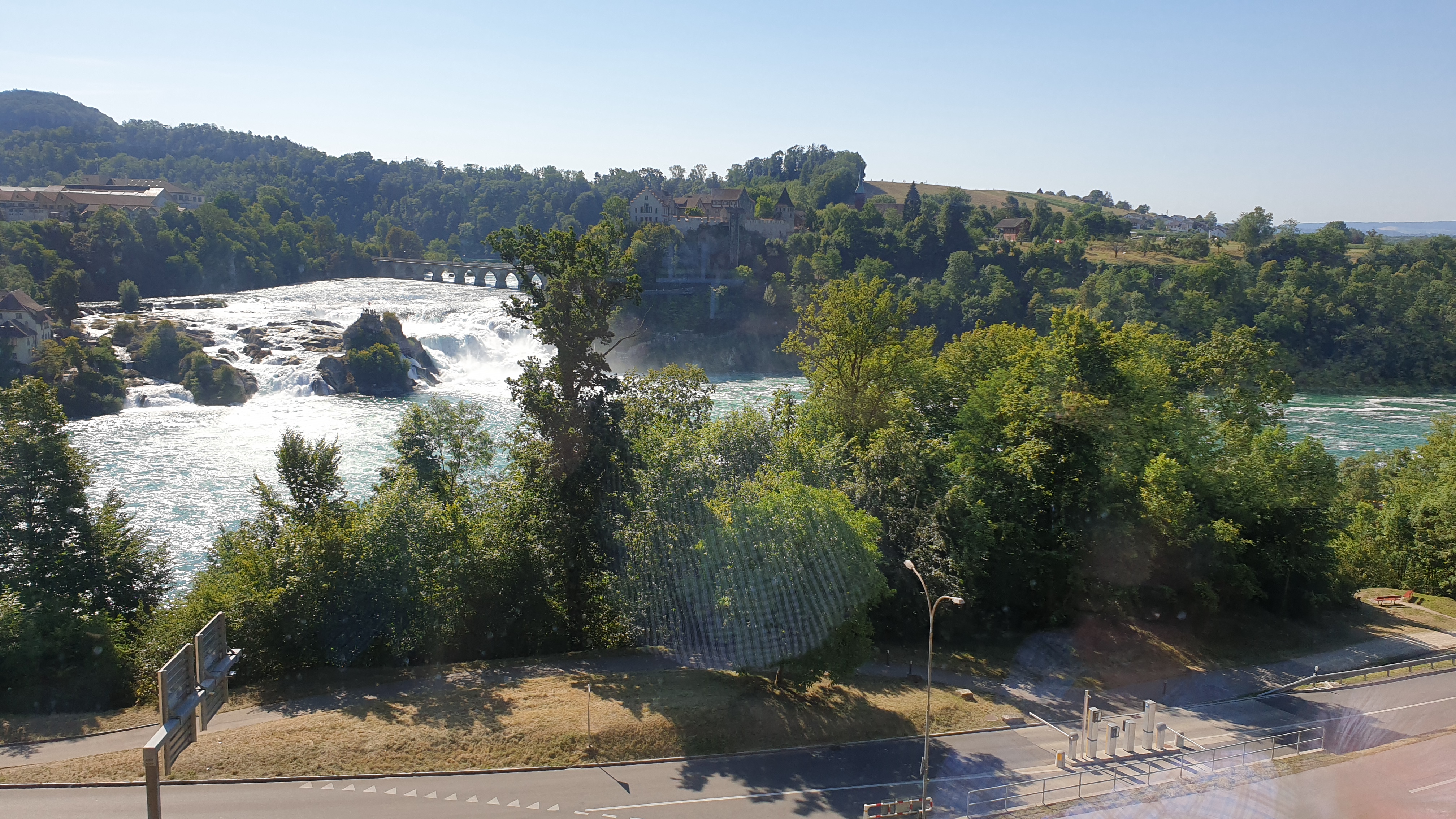 10h43 arrivée à Schaffhouse. Ensuite tour de ville à pied et montée au Munot, site historique. Apéro tiré des sacs. La montée au Munot est sportive, une centaine d’escaliers, mais au sommet la vue est magnifique. Bâtons conseillés. Les moins vaillants pourront se promener sur les rives du Rhin