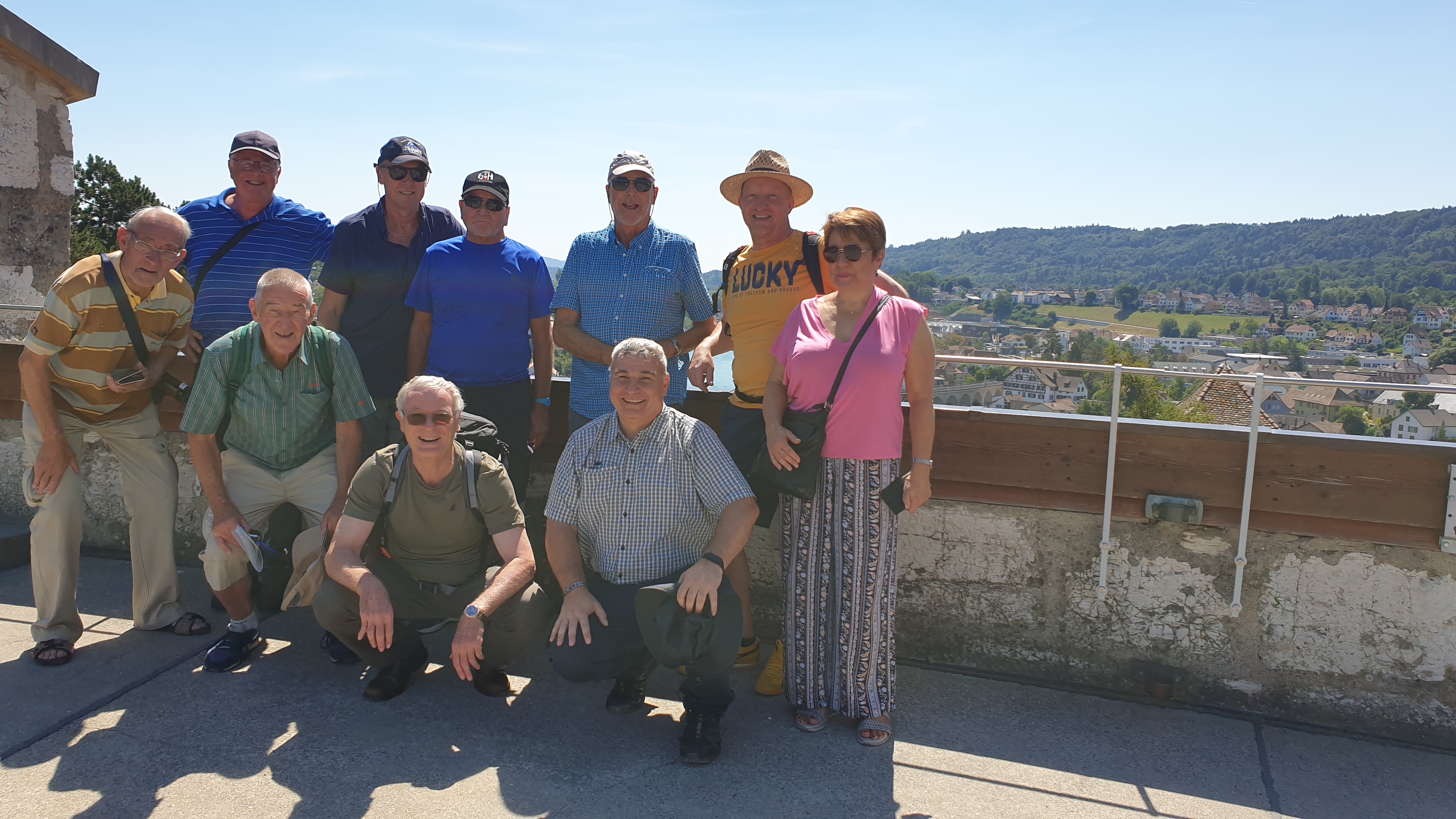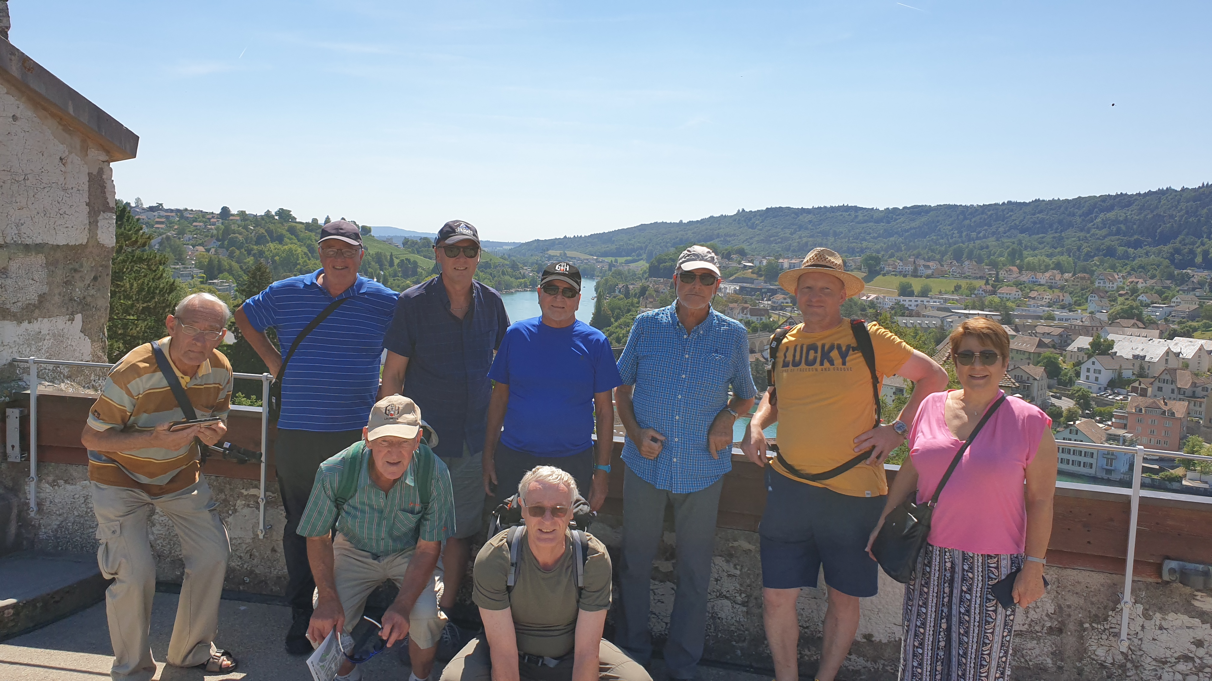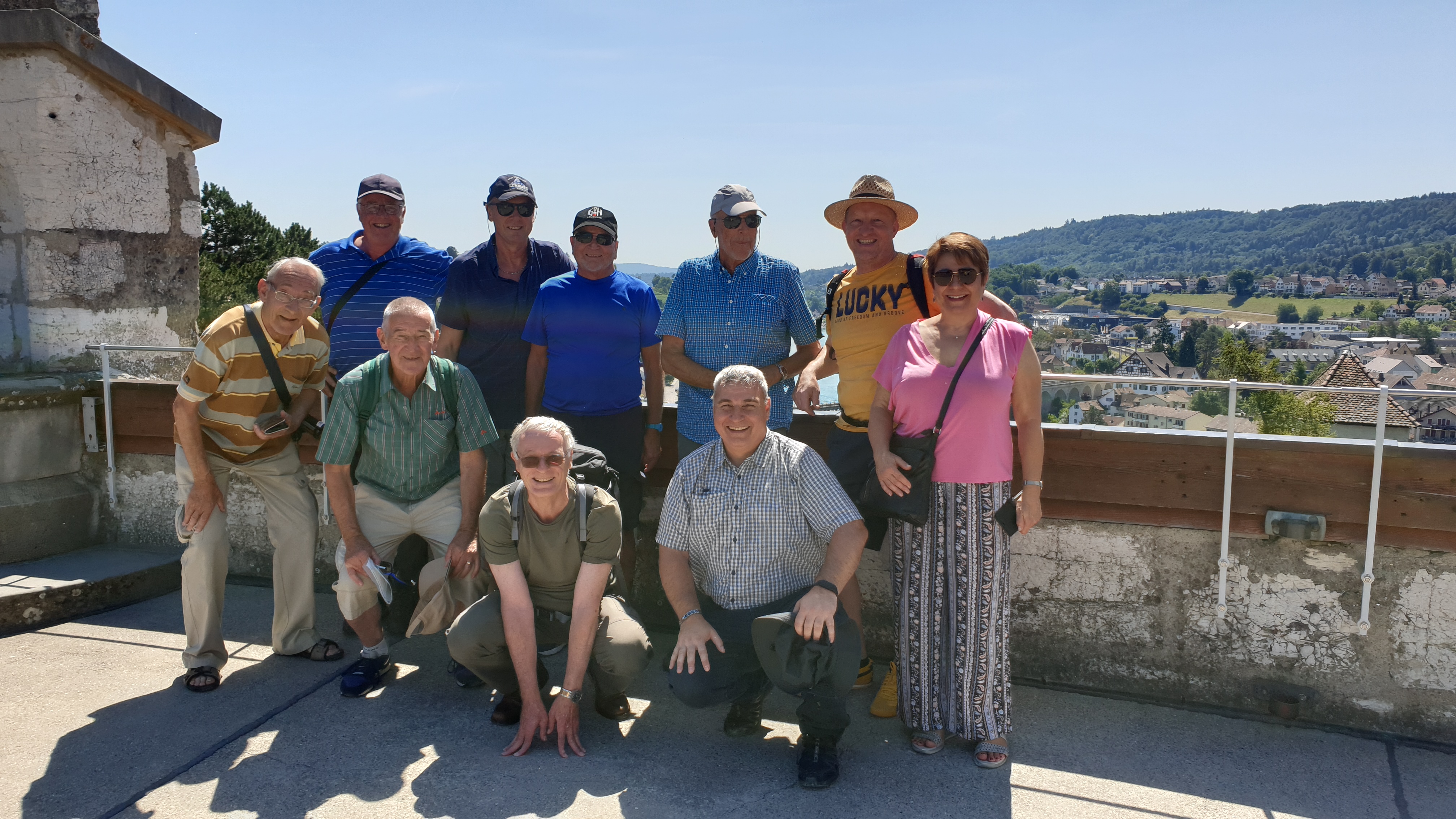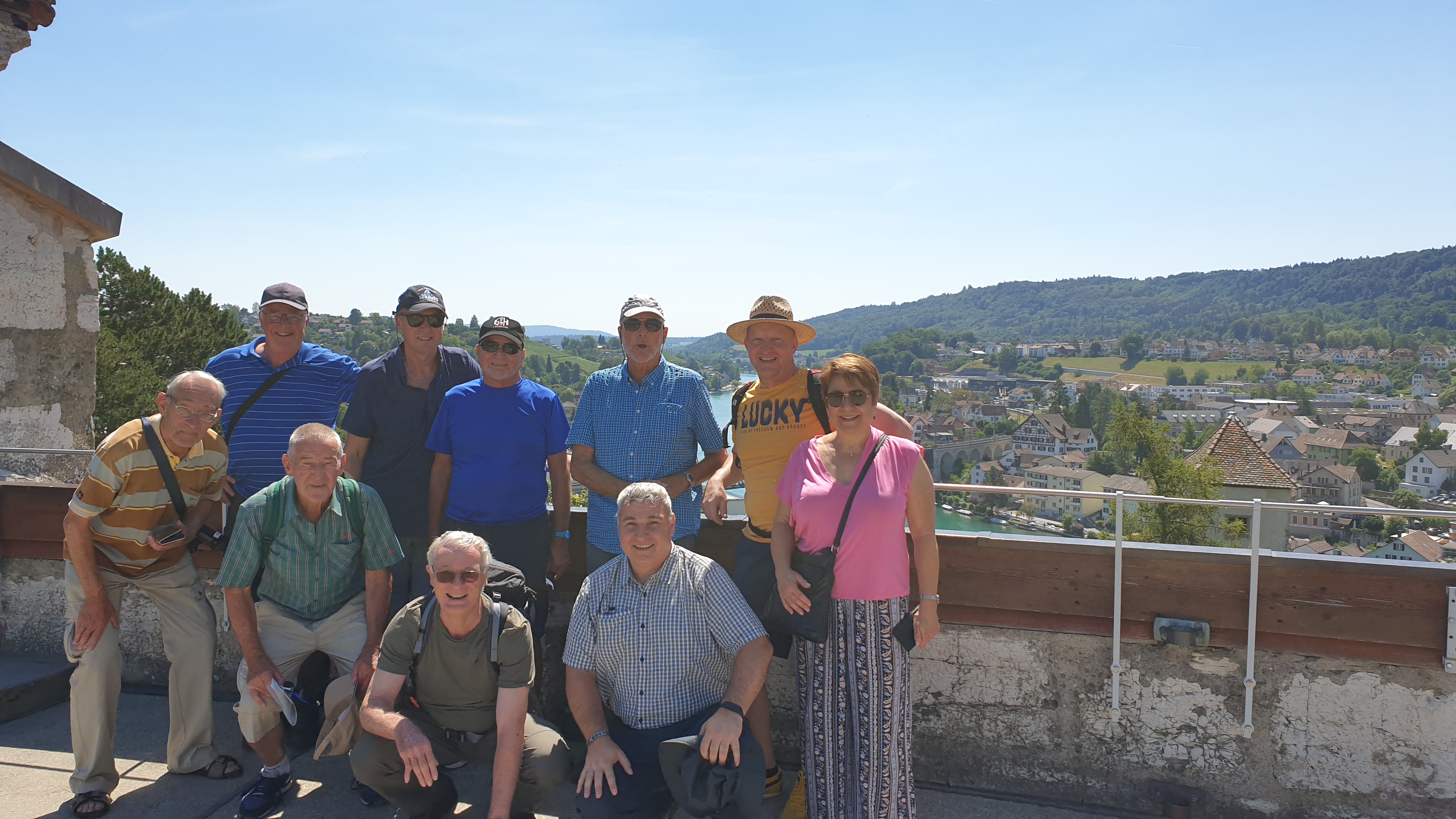 10h43  arrivée à Schaffhouse. Ensuite tour de ville à pied et montée au Munot, site historique. Apéro tiré des sacs. La montée au Munot est sportive, une centaine d’escaliers, mais au sommet la vue est magnifique.  Bâtons conseillés. Les moins vaillants pourront se promener sur les rives du Rhin