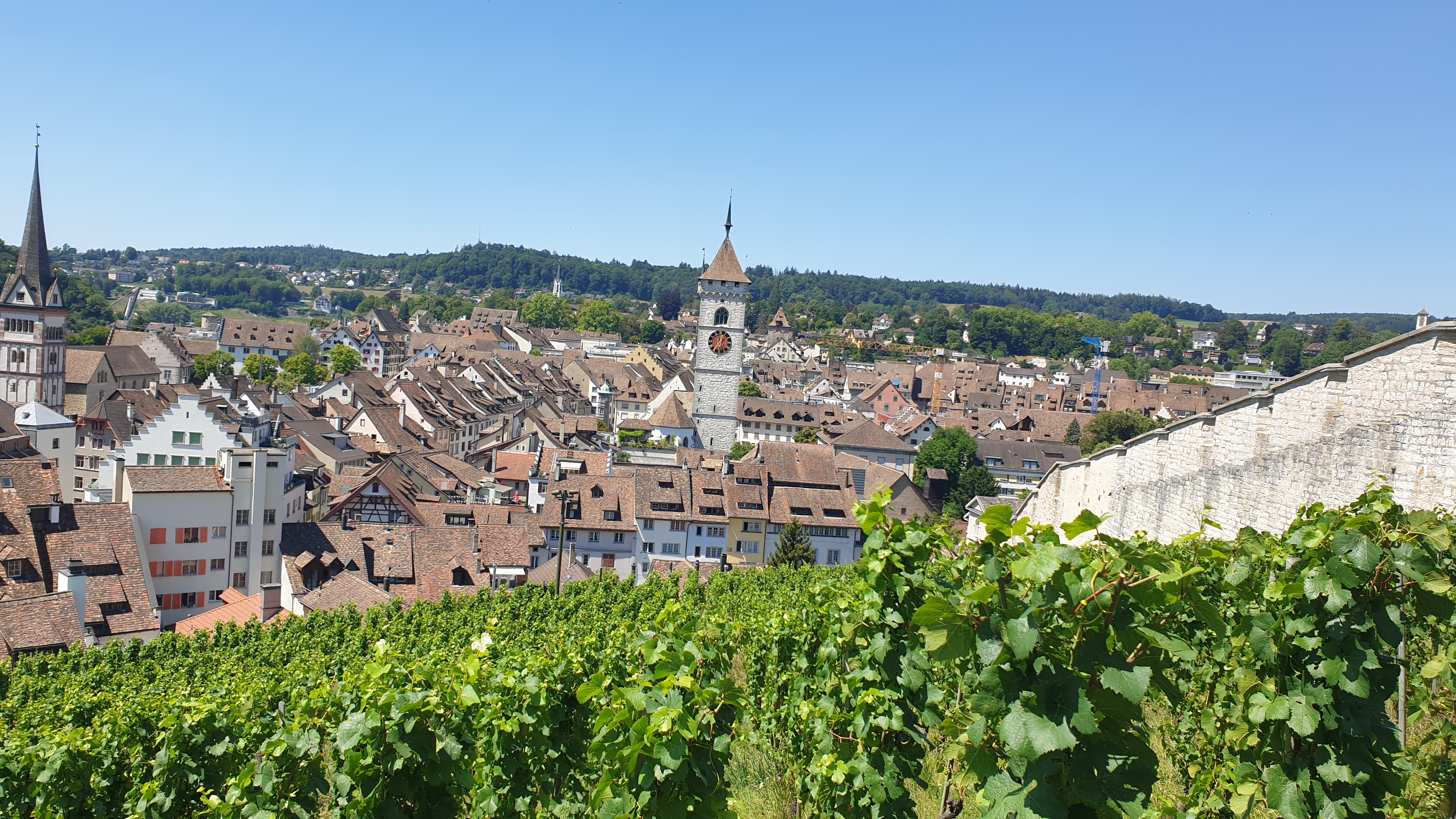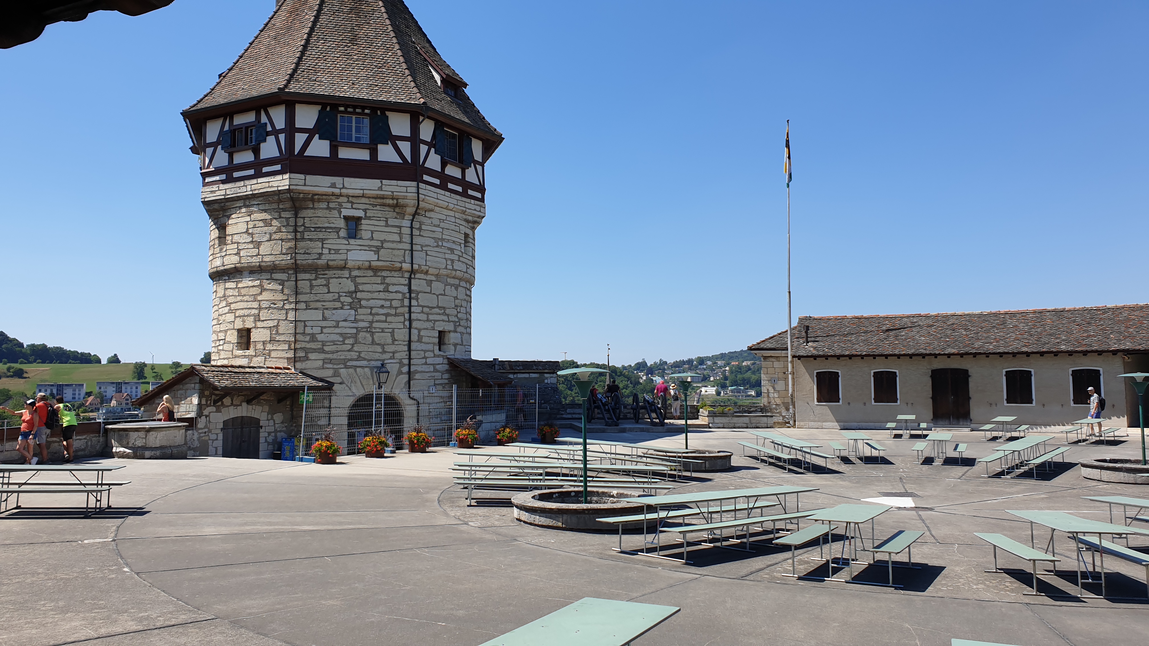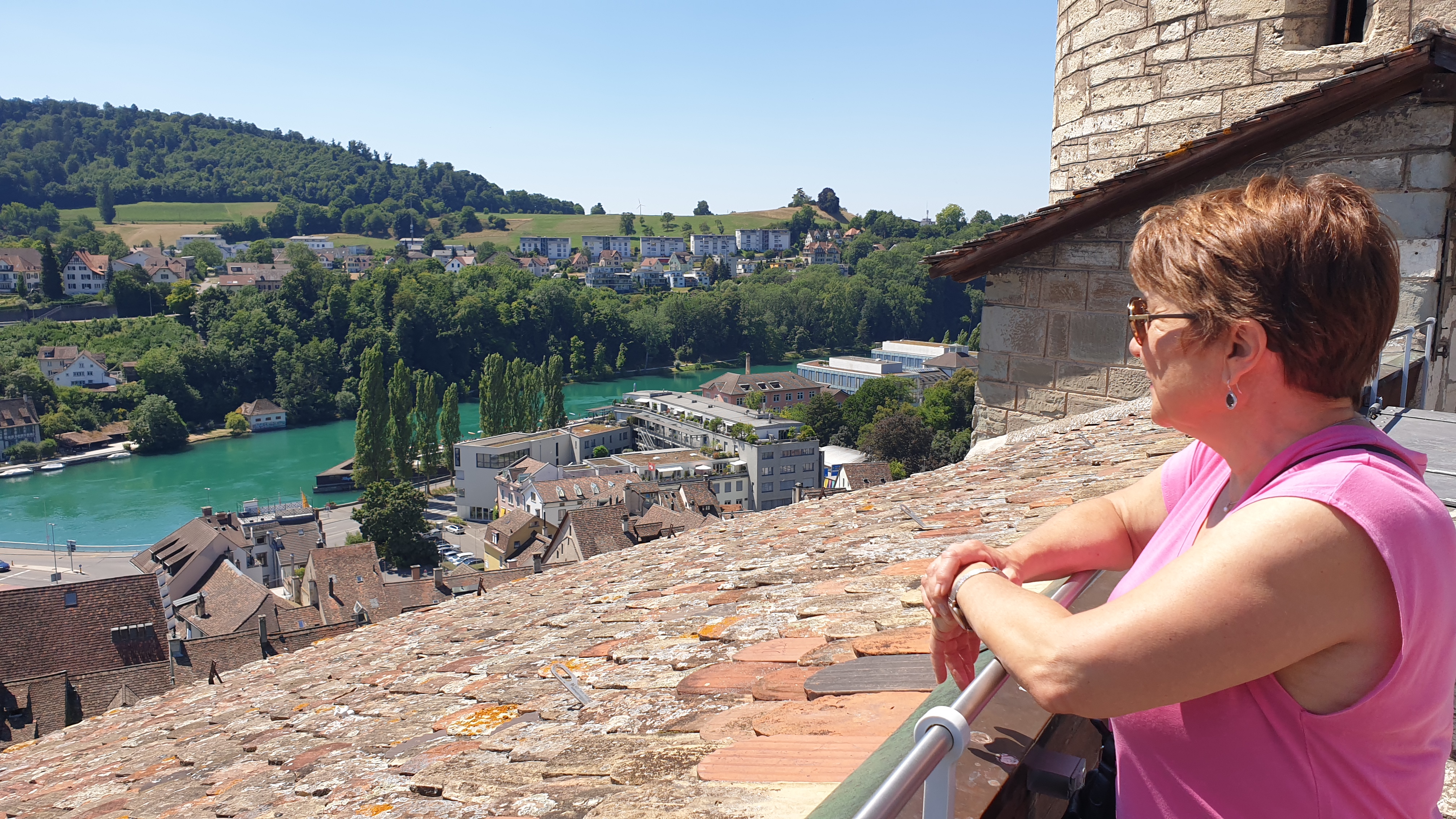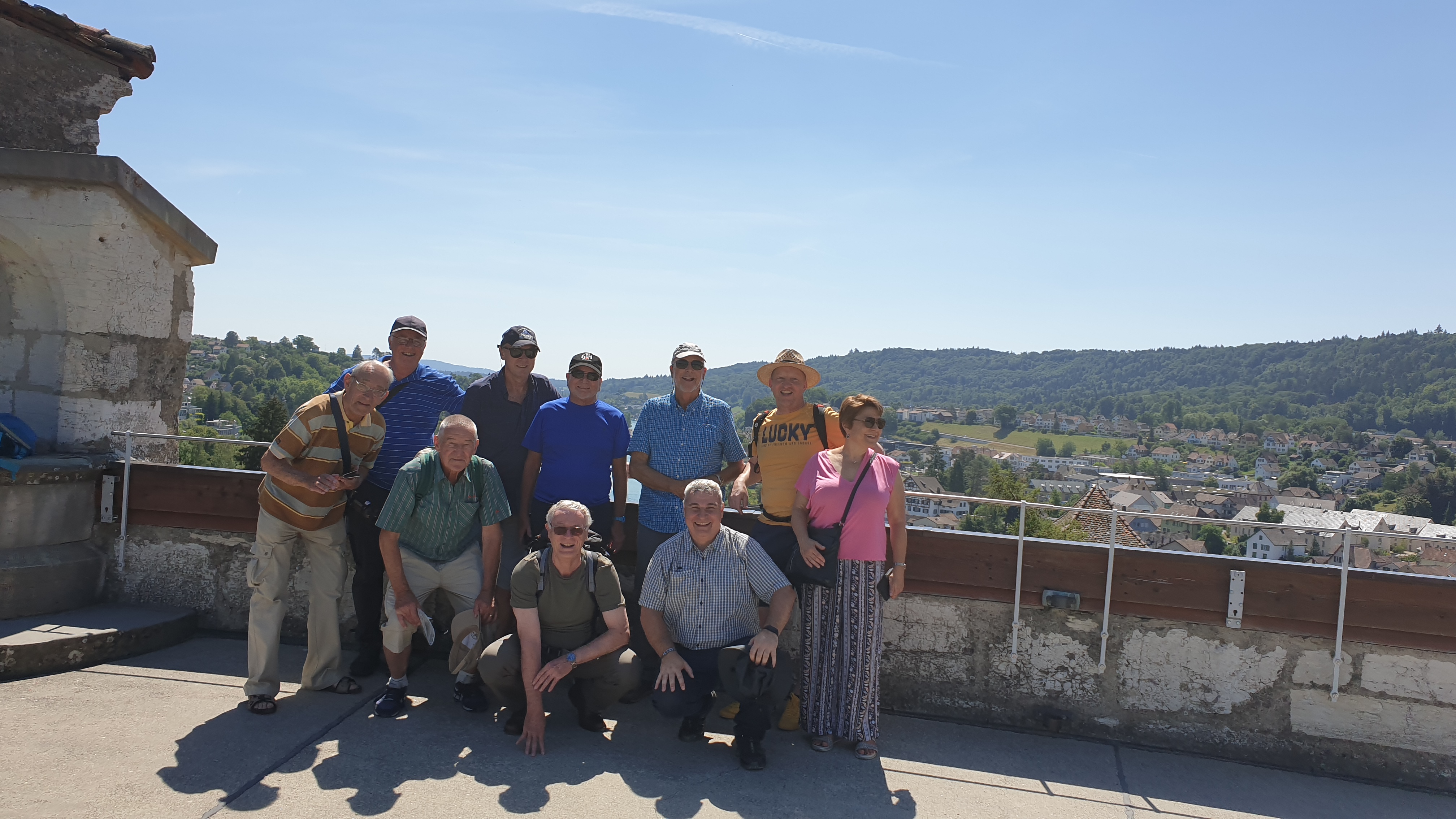 10h43  arrivée à Schaffhouse. Ensuite tour de ville à pied et montée au Munot, site historique. Apéro tiré des sacs. La montée au Munot est sportive, une centaine d’escaliers, mais au sommet la vue est magnifique.  Bâtons conseillés. Les moins vaillants pourront se promener sur les rives du Rhin
