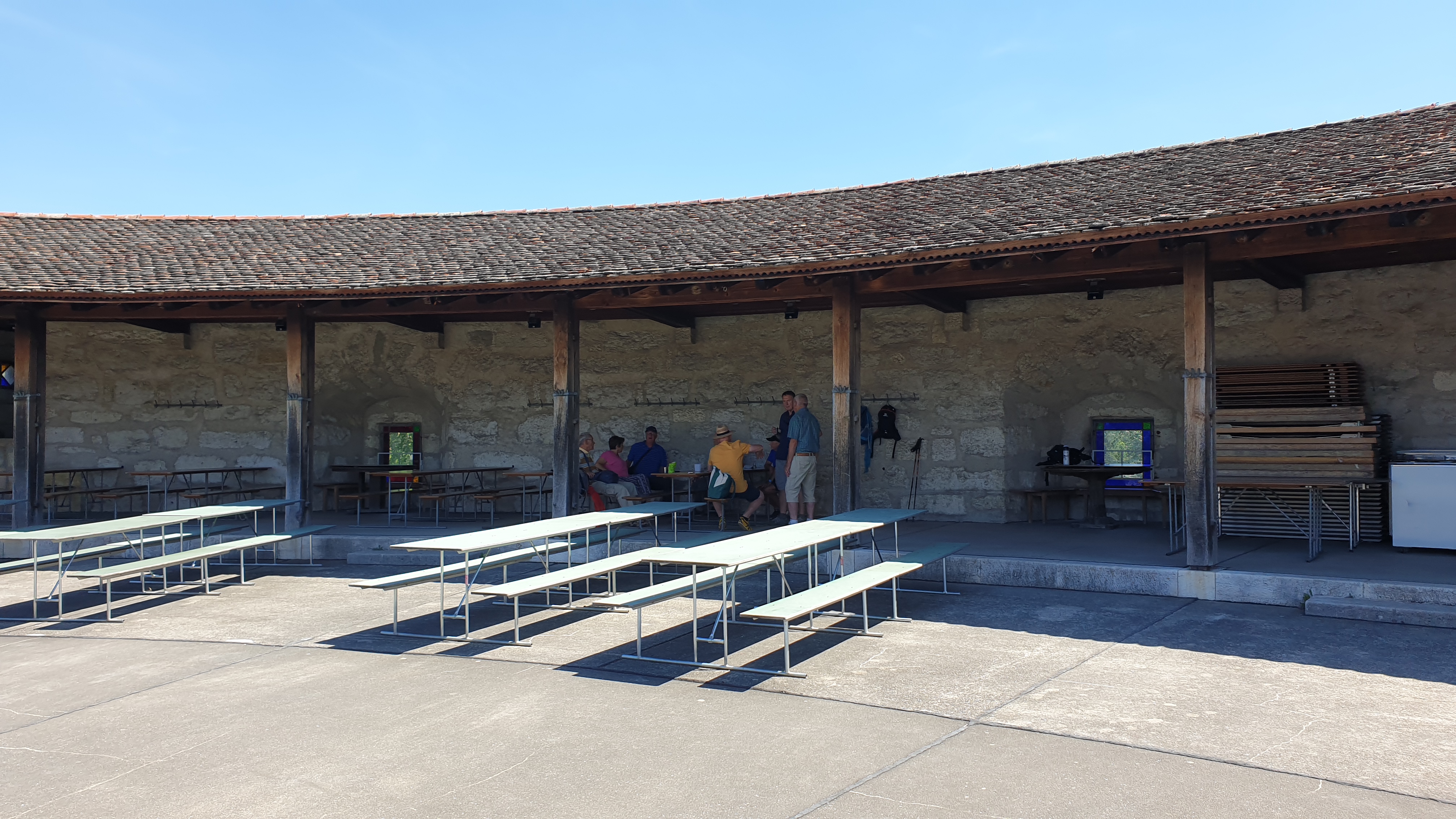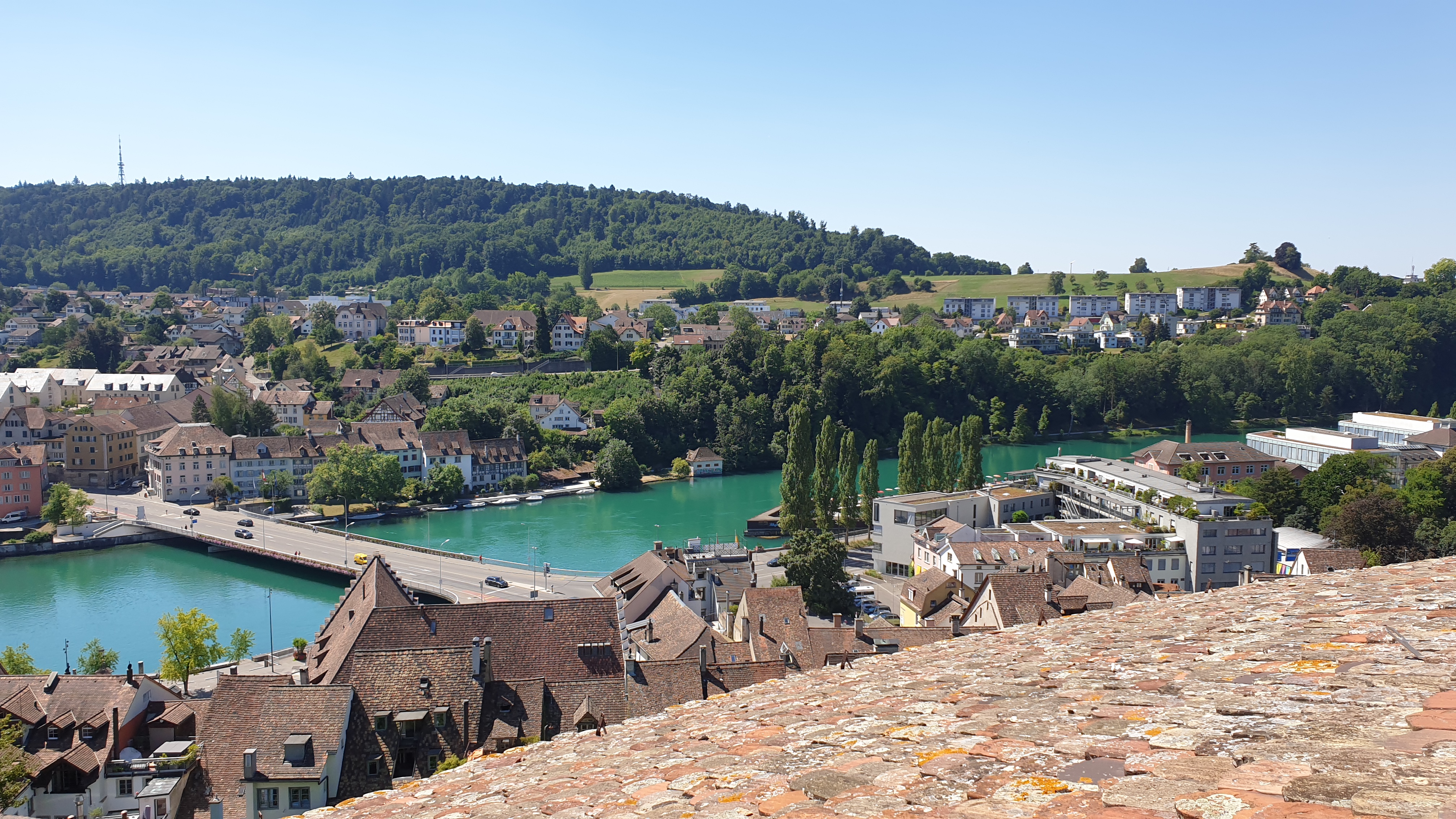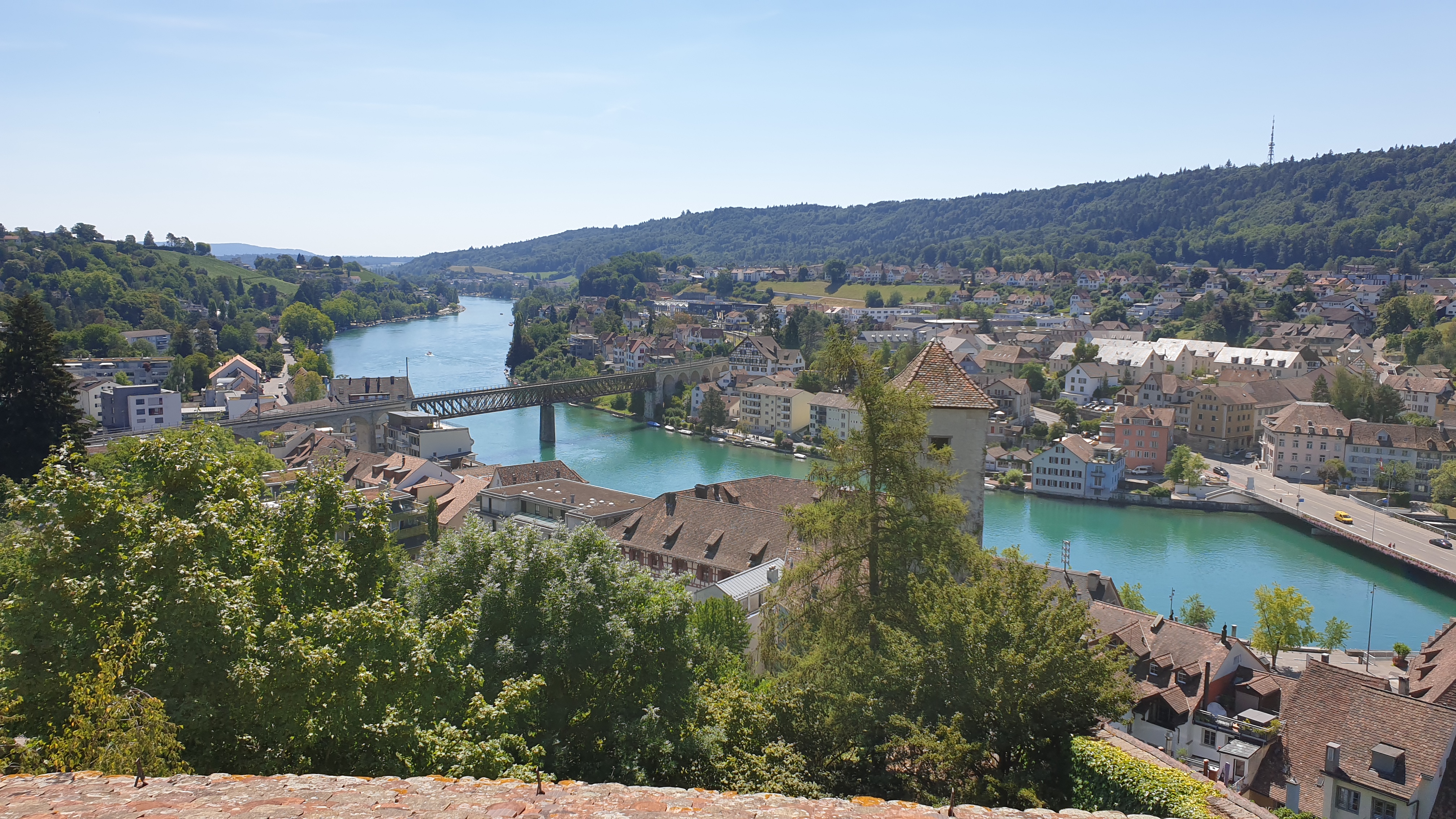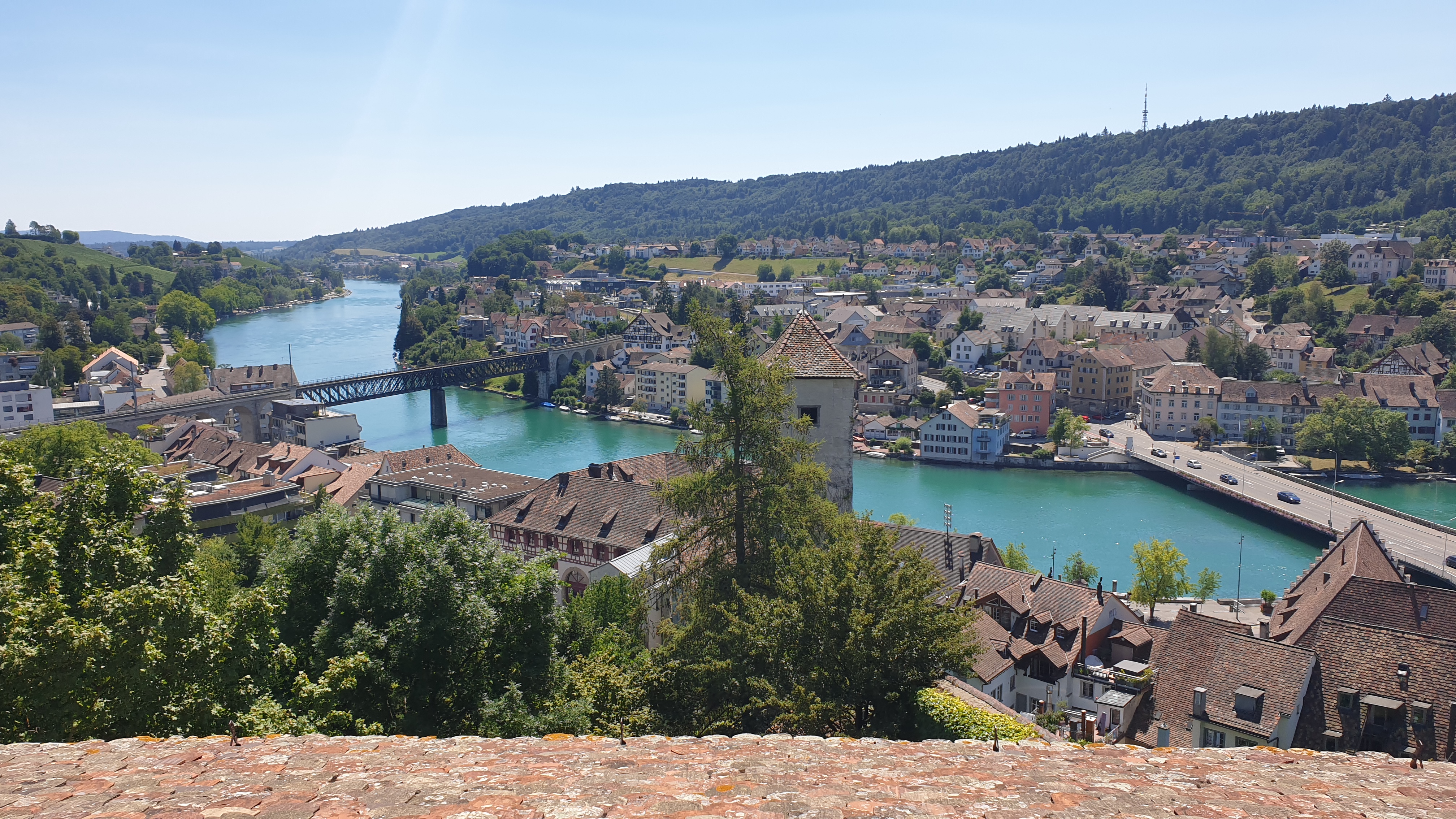 10h43  arrivée à Schaffhouse. Ensuite tour de ville à pied et montée au Munot, site historique. Apéro tiré des sacs. La montée au Munot est sportive, une centaine d’escaliers, mais au sommet la vue est magnifique.  Bâtons conseillés. Les moins vaillants pourront se promener sur les rives du Rhin