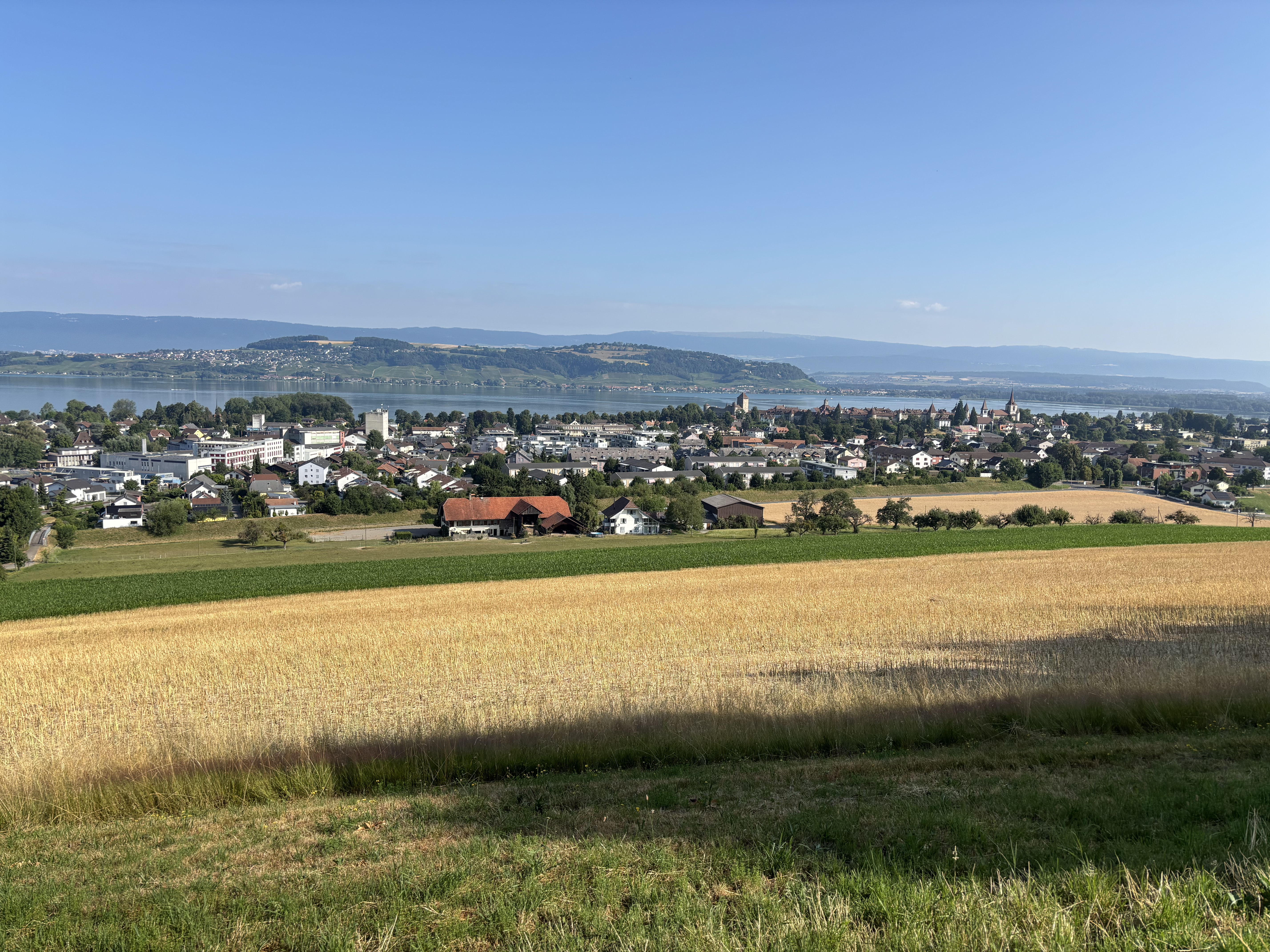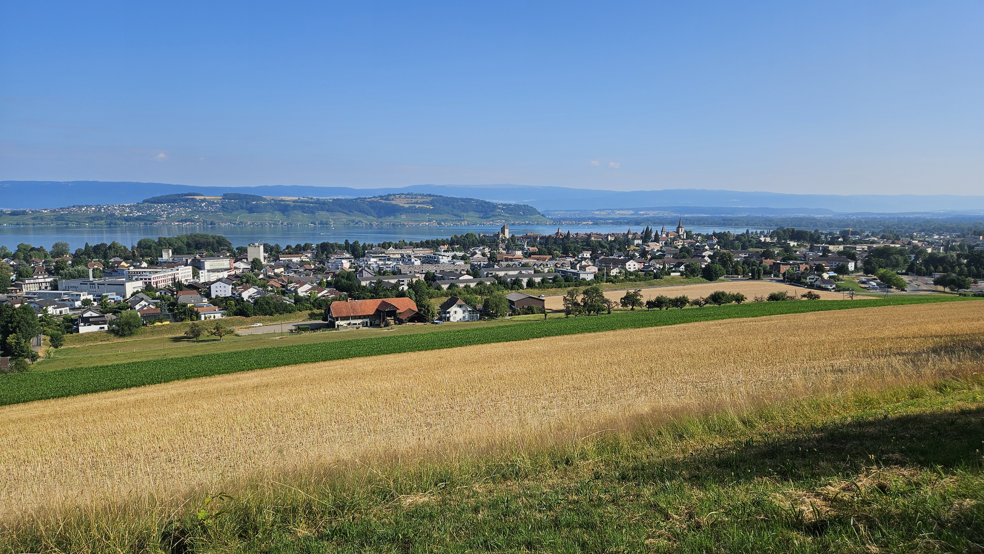 De là, nous rejoindrons la ville de Morat en marchant, en passant par le bois Domingue (point historique, vue superbe sur la cité, le Seeland et le Jura). A part la petite montée vers le bois, la balade est en descente puis quasiment à plat. Durée: environ 1 heure.