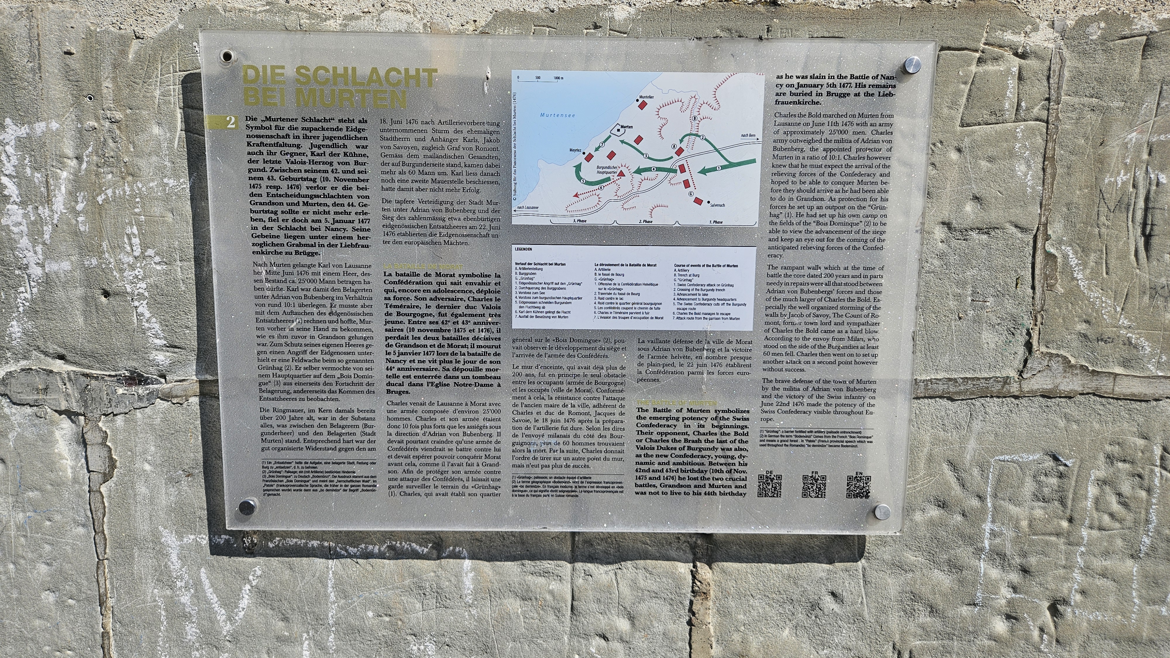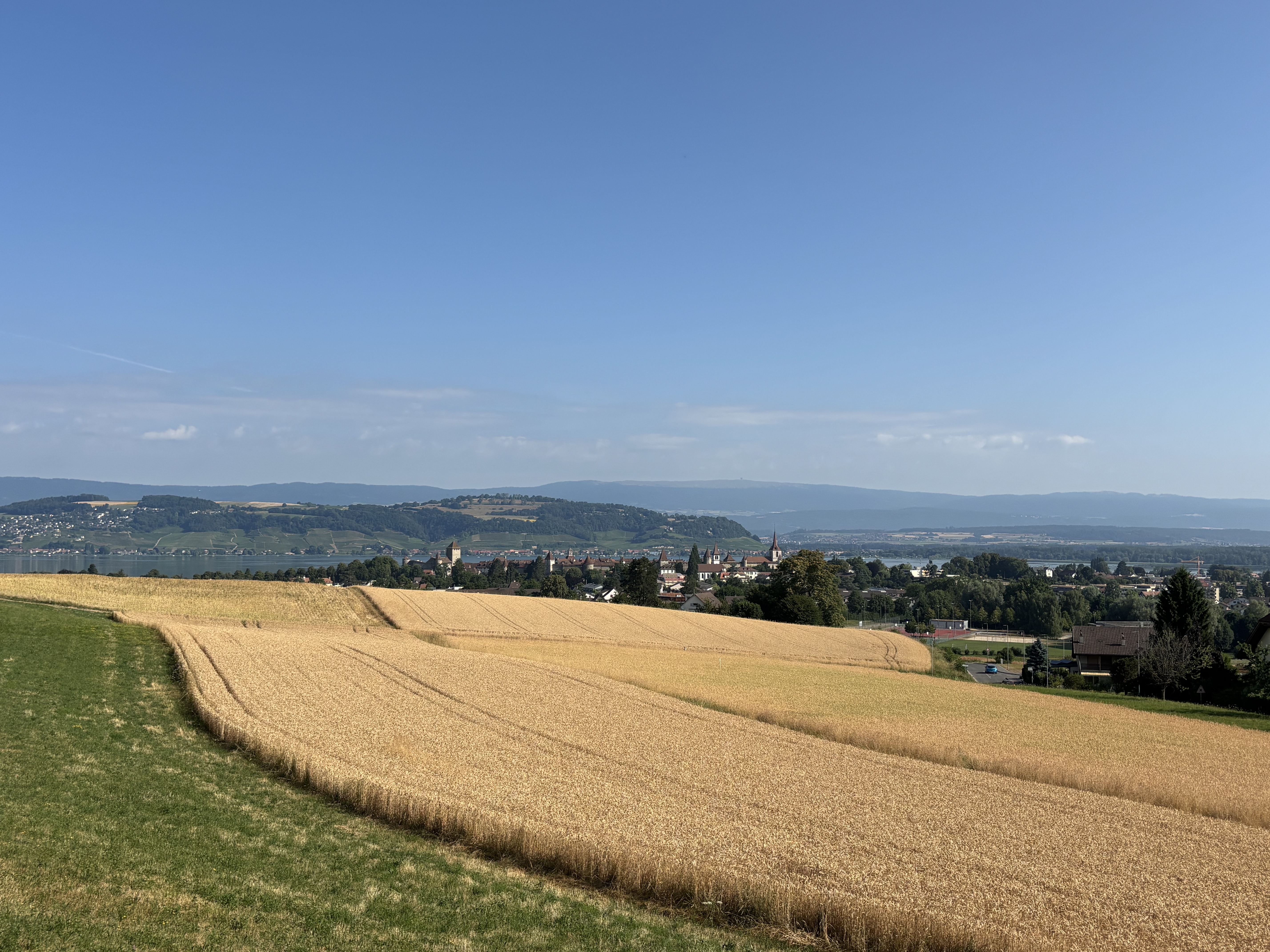 De là, nous rejoindrons la ville de Morat en marchant, en passant par le bois Domingue (point historique, vue superbe sur la cité, le Seeland et le Jura). A part la petite montée vers le bois, la balade est en descente puis quasiment à plat. Durée: environ 1 heure.