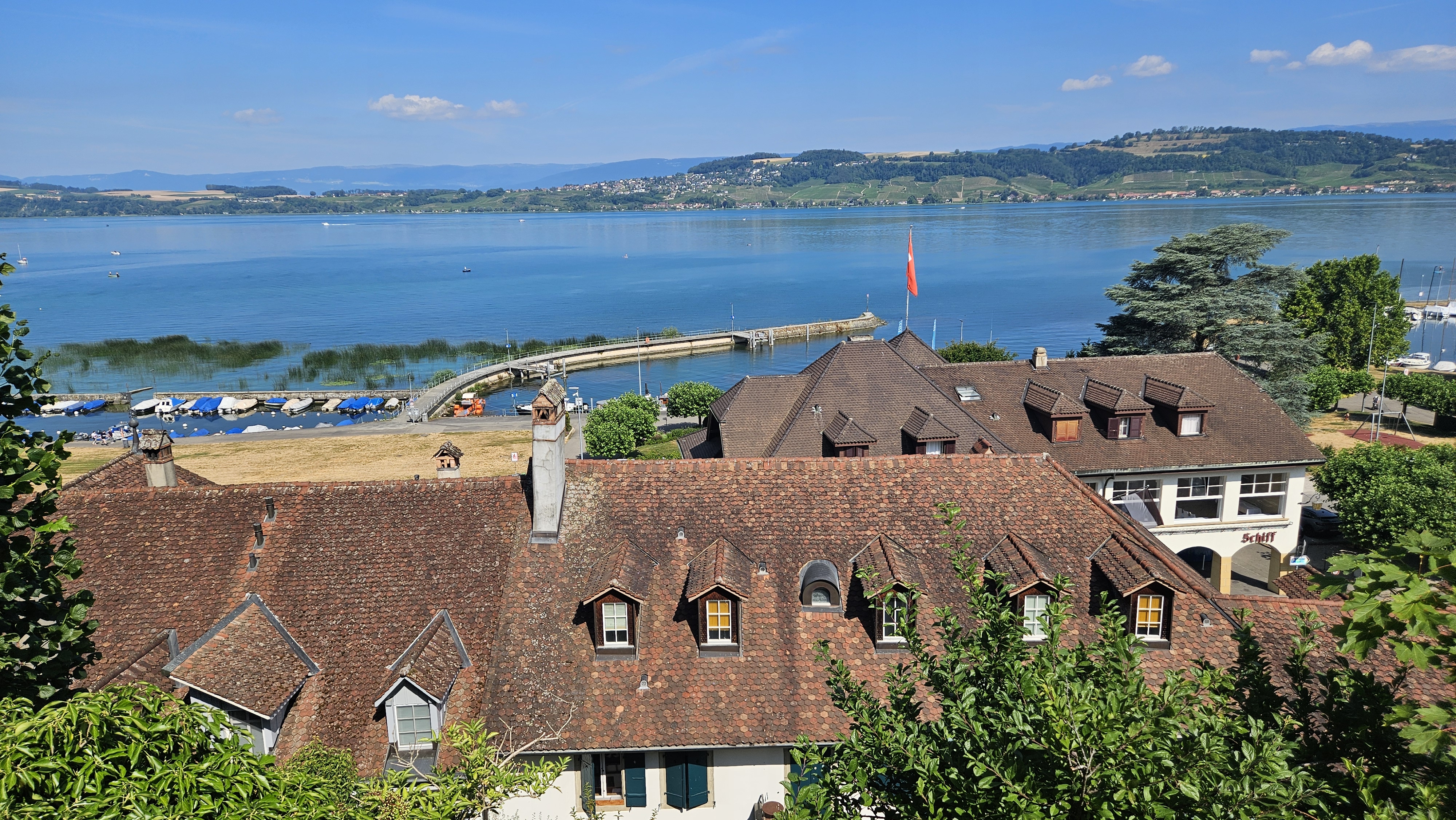 Le retour se fera en bateau depuis le port de Morat (Départ 14h40) pour Neuchâtel.