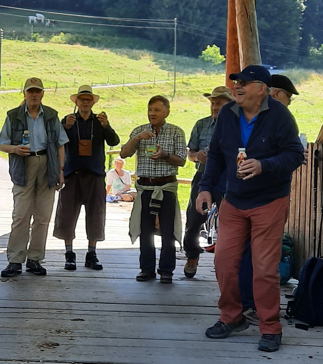 Apéro et pique – nique tirés des sacs comme traditionnellement pour les courses d’été. Possibilité de trouver un restaurant sur place, mais pas de réservation de ma part.