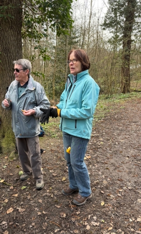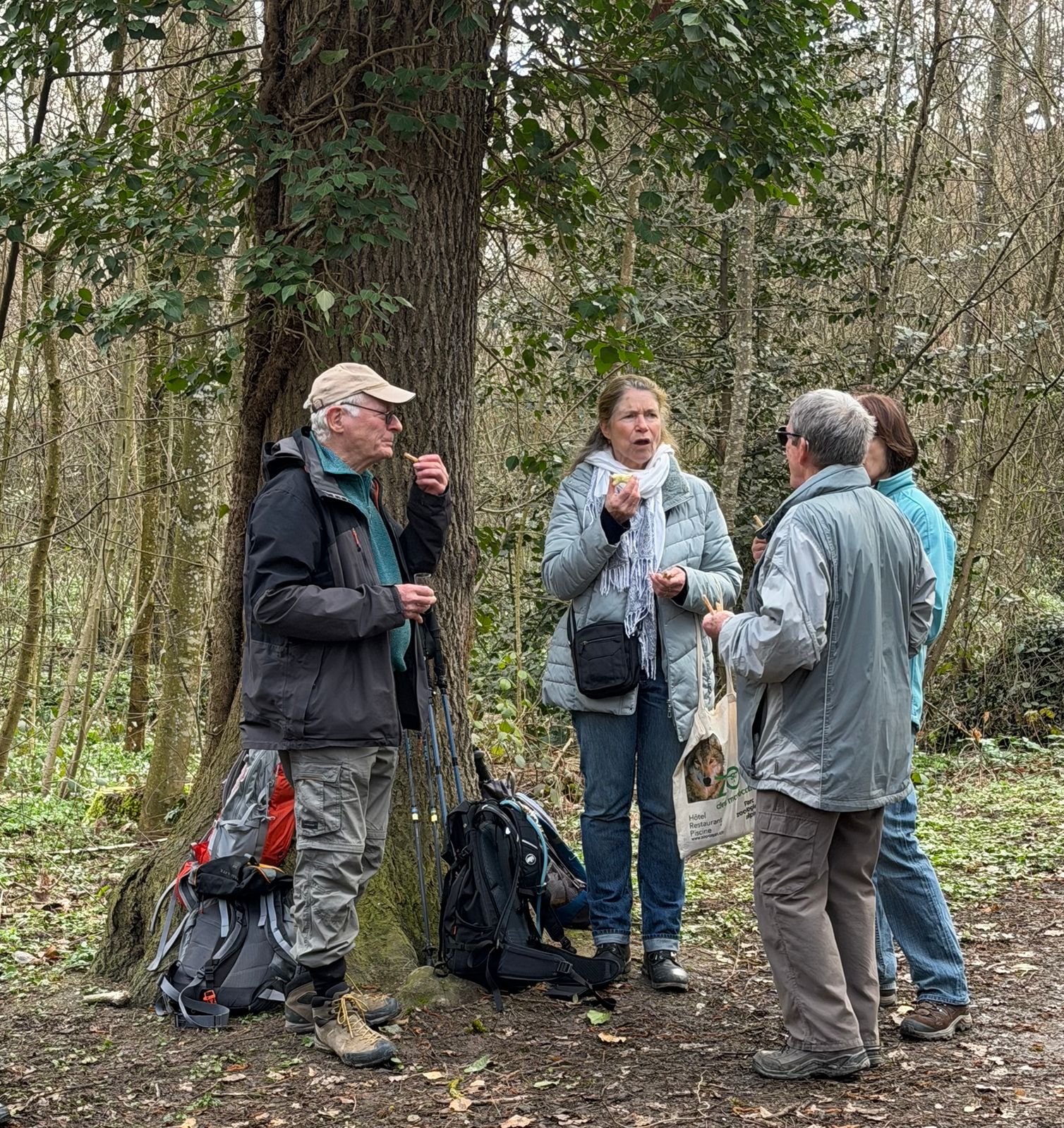 dans le petit bois en face de l’entrée du restaurant.